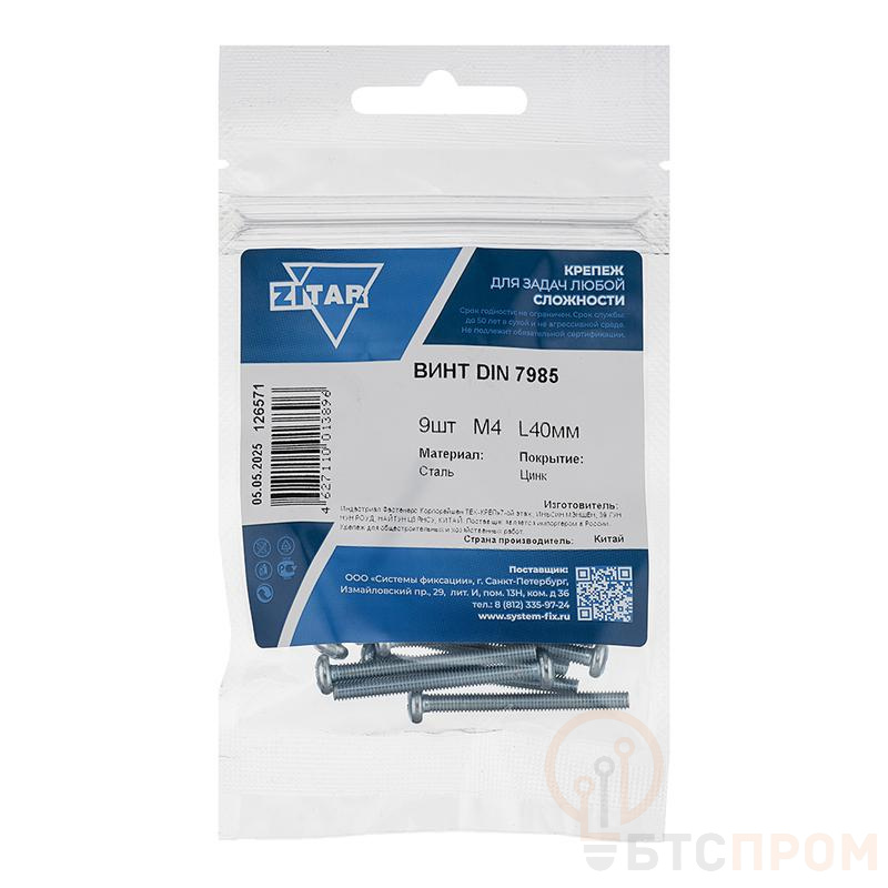 Винт с полукруглой головкой М4х40 DIN 7985 от производителя Tech-Krep/Zitar — это надежный крепежный элемент для сборки различных конструкций. Резьба метрического типа М4 и длина 40 мм обеспечивают прочное соединение деталей. Полукруглая головка придает изделию эстетичный вид и удобство для монтажа. Изделие изготовлено из качественной стали и имеет цинковое покрытие, что обеспечивает высокую коррозионную стойкость и долгий срок службы даже в условиях повышенной влажности.
