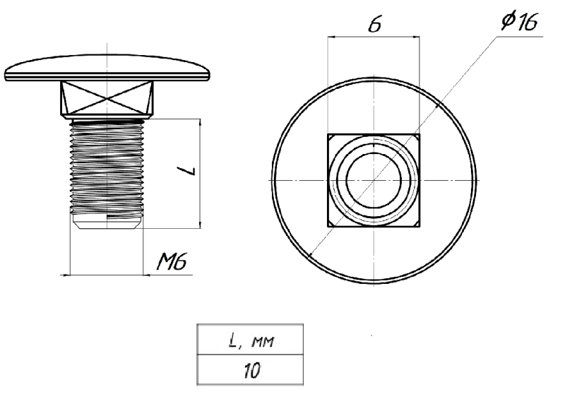 –Винт с квадратным подголовником М6х10 EKF wkm6x10