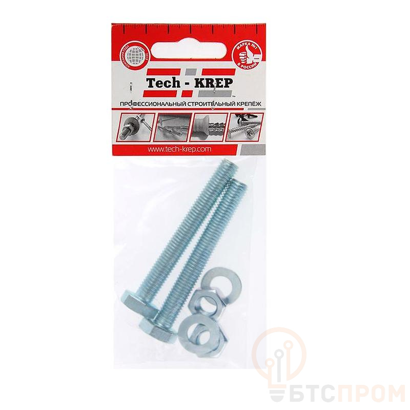 Болт с шестигранной головкой М8х100 DIN 933 + гайка + шайба оцинк. (уп.2шт) Tech-Krep/Zitar 112725 фото в каталоге от BTSprom.by
