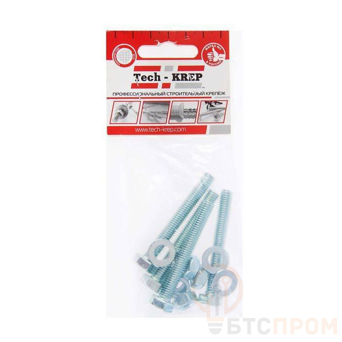 Болт с шестигранной головкой М8х60 DIN 933 + гайка + шайба оцинк. (уп.4шт) Tech-Krep/Zitar 112724 фото в каталоге от BTSprom.by