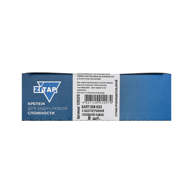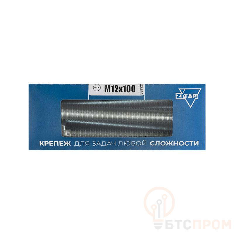 Болт с шестигранной головкой М12х100 DIN 933 класс прочн. 8.8 оцинк. (коробка) (уп.8шт) Tech-Krep/Zitar 126525
