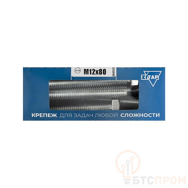 Болт с шестигранной головкой М12х80 DIN933 8.8 оцинк. (коробка с окном) (уп.10шт) Tech-Krep/Zitar 126531