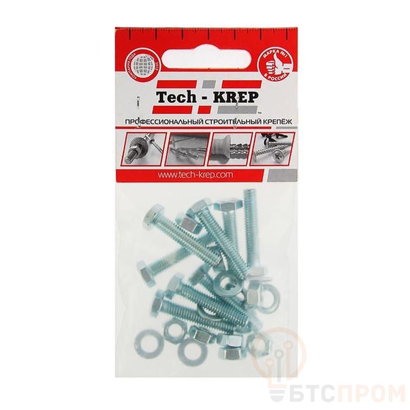 Болт с шестигранной головкой М6х30 DIN 933 класс прочн. 8.8 с гайкой и шайбой оцинк. (пакет) (уп.8шт) Tech-Krep/Zitar 114051