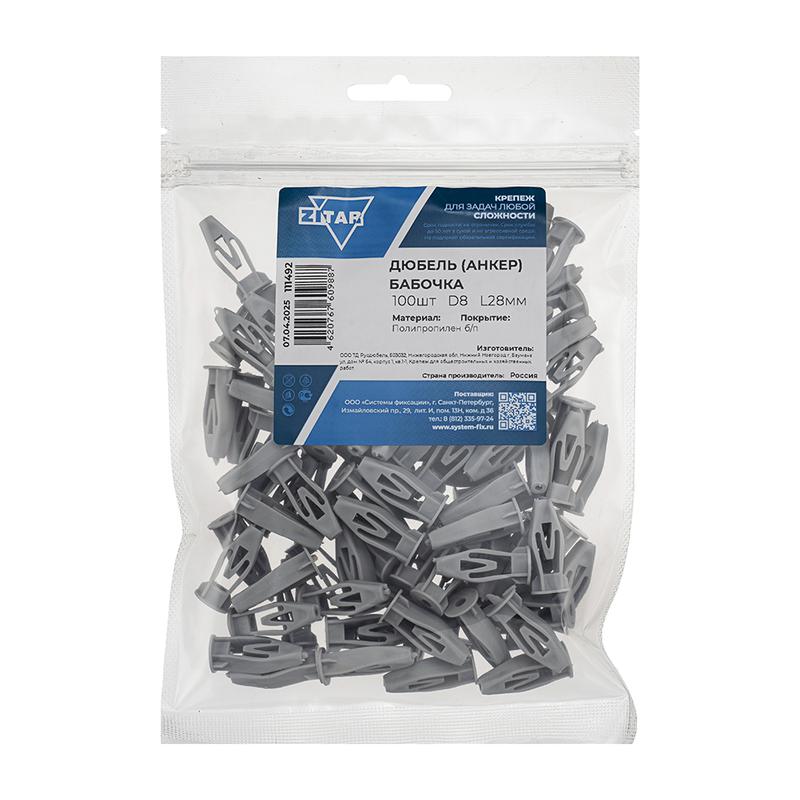 Дюбель бабочка 8х28 полипропилен (уп.100шт) Tech-Krep/Zitar 111492 фото в каталоге от BTSprom.by