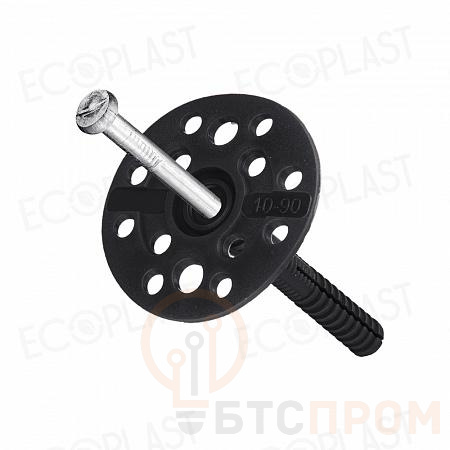 Дюбель для теплоизоляции с металлическим гвоздем 10х90 мм от бренда EcoPlast – это надежное и специализированное крепежное решение для монтажа фасадных теплоизоляционных материалов. Изделие состоит из пластикового грибка (зонтика) и стального оцинкованного гвоздя, что обеспечивает прочность и устойчивость к коррозии.