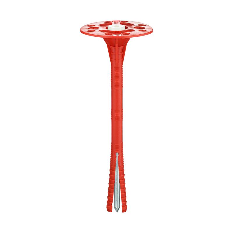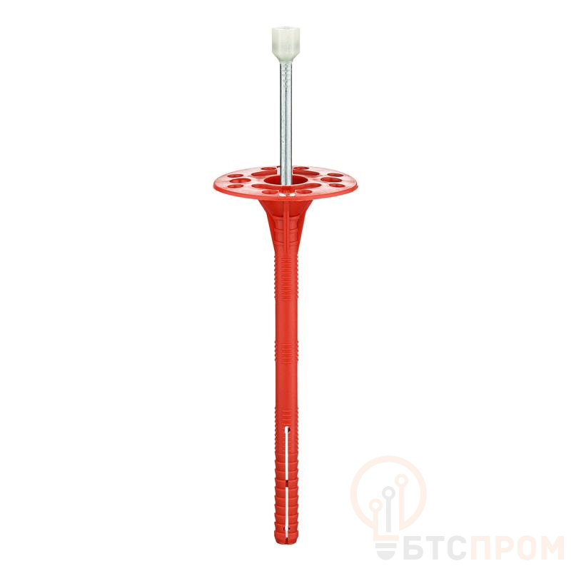 Тарельчатый дюбель IZL-T состоит из следующих элементов: дюбель с двухсегментной распорной зоной и увеличенной прижимной шайбой диаметром 60 мм, и распорный элемент – гвоздь с термоголовкой, которая предотвращает образование «мостика холода». Дюбель выполнен из полипропилена, гвоздь – из углеродистой стали с антикоррозионным горячеоцинкованным покрытием, термоголовка гвоздя – из полиамида. Дюбель предназначен для крепления теплоизоляционных строительных материалов и изделий (толщиной до 240 мм) к основаниям из бетона, кладки из полнотелого силикатного керамического и пустотелого керамического кирпича, ячеистого бетона. Установка производится методом сквозного монтажа. В среднем на 1 кв. м площади теплоизоляции применяется 5-6 дюбелей.