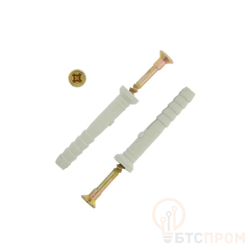 Дюбель-гвоздь SM-L состоит из следующих элементов: дюбель с потайным бортиком и двухсегментной распорной зоной, распорный элемент – специальный гвоздь с потайной головкой с крестообразным шлицем PZ и усиленным подголовником. Дюбель изготовлен из полипропилена, гвоздь – из углеродистой стали, покрытие – желтый цинк. Дюбель-гвоздь предназначен для крепления строительных материалов и изделий к основаниям из бетона, полнотелого кирпича, строительного камня. Применяется для сквозного монтажа кронштейнов, дверных коробок, оконных рам, кабельных каналов, обрешетки, гипсокартонных листов (ГКЛ), гипсоволокнистых листов (ГКЛ) и т.д. Для установки необходимо предварительно просверлить отверстие. Прочность крепежа достигается расклиниванием дюбеля в отверстии гвоздем в момент удара молотком. С помощью крестообразного шлица на головке гвоздя можно легко ослабить или усилить крепеж, демонтировать его. Дюбель-гвоздь с потайным бортиком устанавливается «заподлицо», т.е. его шляпка утапливается, благодаря чему возможно производить крепежные работы без последующего выравнивания поверхности.