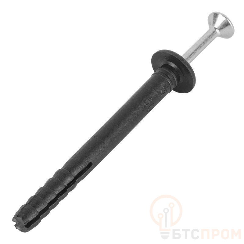 Дюбель-гвоздь предназначен для быстрого крепления различных предметов к основаниям из бетона, пустотелого и полнотелого кирпича, керамзитобетона и газобетона. Главное преимущество такого крепления – установка ударным способом (молотком), что значительно экономит время и обеспечивает быстрый монтаж. Грибовидный бортик выступает над поверхностью. Этот тип бортика особенно полезен, когда необходимо, чтобы дюбель оставался на поверхности и не углублялся в отверстие. Усиление под шляпкой плотно фиксирует гвоздь в дюбеле, защищая его от излома. С помощью крестообразного шлица на головке гвоздя можно легко ослабить или усилить крепеж, а также демонтировать его.