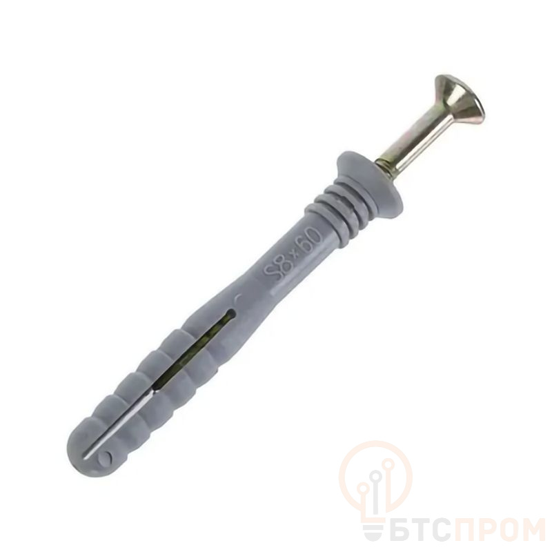 Характеристики: диаметр 6 мм, длина 60 мм, материал дюбеля — ударопрочный полипропилен, материал гвоздя — оцинкованная сталь. Потайная головка позволяет утопить крепеж в материале, создавая идеально ровную поверхность.