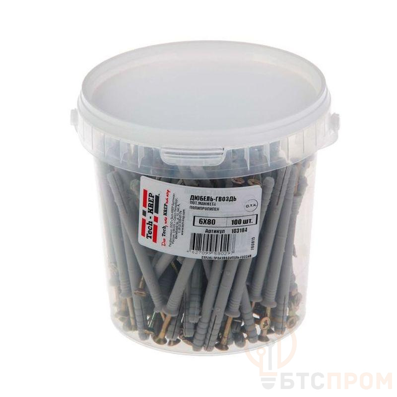 Дюбель-гвоздь 6х80 с потайной манжетой полипропилен (уп.100шт) ведро Tech-Krep 103184 фото в каталоге от BTSprom.by