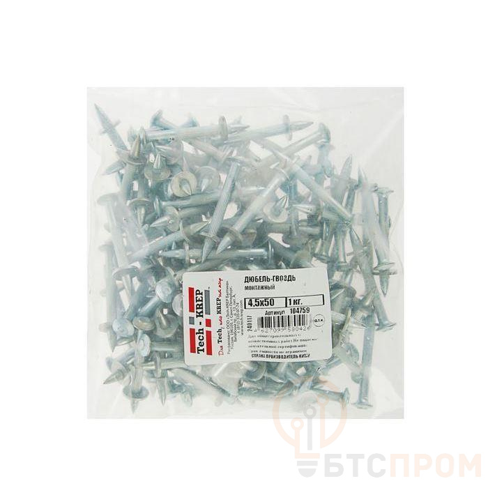 Дюбель-гвоздь монтажный ДГМ имеет широкую шляпку, подвижную шайбу и острый наконечник. Шайба необходима для центровки и фиксации дюбель-гвоздя в монтажном пистолете перед выстрелом. Дюбель-гвоздь изготовлен из углеродистой стали с антикоррозионным цинковым покрытием. Предназначен для сквозного монтажа металлических и деревянных строительных конструкций к бетонным или кирпичным основаниям с помощью порохового монтажного пистолета. Соединение получается неразборным. Запрещается применять дюбель-гвозди для крепления механизмов и оборудования, подвергающихся вибрационным или динамическим нагрузкам. Предварительное сверление отверстия не требуется.