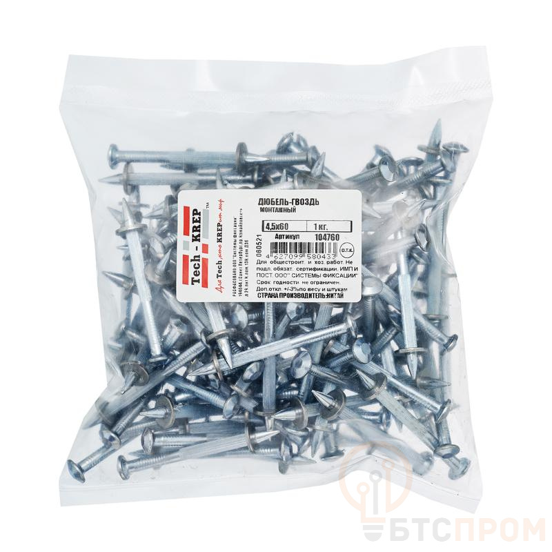 Дюбель-гвоздь монтажный ДГМ имеет широкую шляпку, подвижную шайбу и острый наконечник. Шайба необходима для центровки и фиксации дюбель-гвоздя в монтажном пистолете перед выстрелом. Дюбель-гвоздь изготовлен из углеродистой стали с антикоррозионным цинковым покрытием. Предназначен для сквозного монтажа металлических и деревянных строительных конструкций к бетонным или кирпичным основаниям с помощью порохового монтажного пистолета. Соединение получается неразборным. Запрещается применять дюбель-гвозди для крепления механизмов и оборудования, подвергающихся вибрационным или динамическим нагрузкам. Предварительное сверление отверстия не требуется.