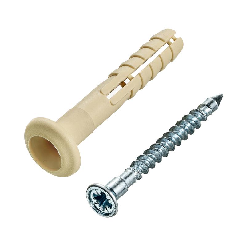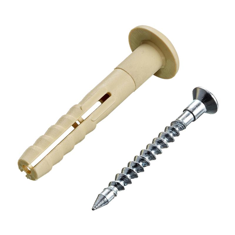 Дюбель-гвоздь SMX-G состоит из следующих элементов: дюбель с грибовидным бортиком и двухсегментной распорной зоной, распорный элемент – специальный гвоздь с потайной головкой с крестообразным шлицем PZ и усиленным подголовником. Дюбель изготовлен из нейлона, гвоздь – из углеродистой стали, покрытие – желтый цинк. Дюбель-гвоздь предназначен для крепления строительных материалов и изделий к основаниям из бетона, полнотелого кирпича, строительного камня. Применяется для сквозного монтажа кронштейнов, дверных коробок, оконных рам, кабельных каналов, обрешетки, гипсокартонных листов (ГКЛ), гипсоволокнистых листов (ГКЛ) и т.д. Для установки необходимо предварительно просверлить отверстие. Прочность крепежа достигается расклиниванием дюбеля в отверстии гвоздем в момент удара молотком. С помощью крестообразного шлица на головке гвоздя можно легко ослабить или усилить крепеж, демонтировать его.