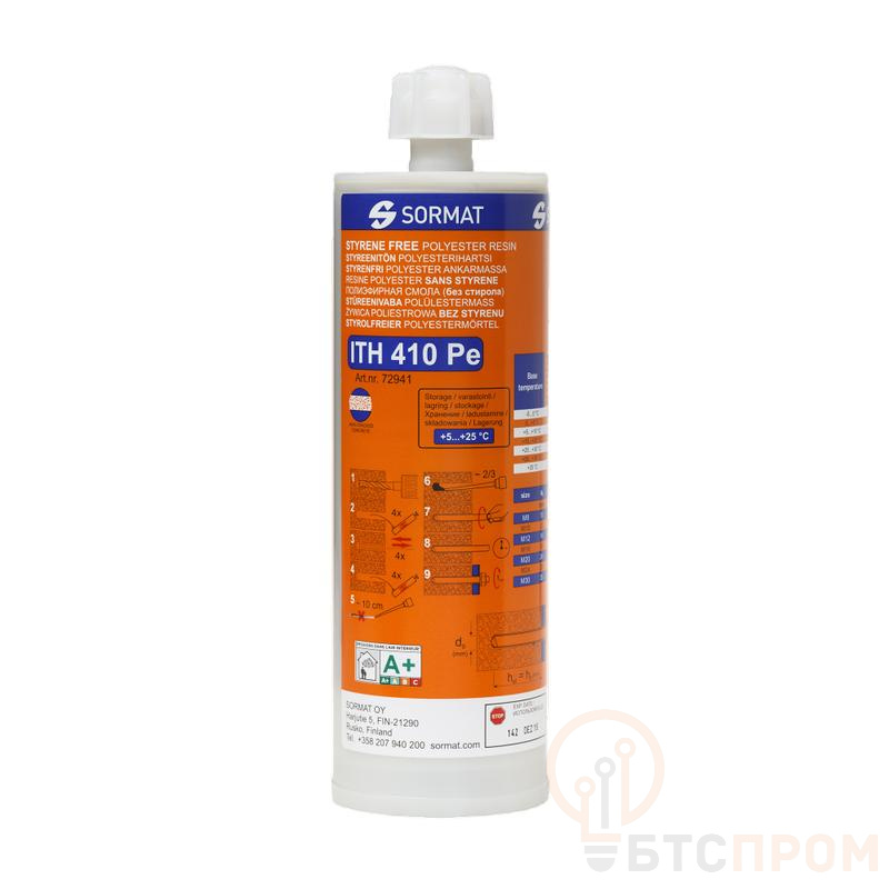Инжекционные массы ITH, относящиеся к ассортименту химических креплений «Sormat», являются высококачественными, изделиями со слабым запахом, и не имеют в своем составе стирола. Инжекционные массы ITH являются решениями для креплений не только в бетоне, но и в кирпичной кладке, пористых и полых конструкциях, а также под водой. Инжекционная масса Sormat ITH-Рe – это простой, экономичный, надежный способ крепления в сплошные и пористые материалы (бетон, кирпич, камень и т.д.). Может использоваться близко от края при креплении анкеров для облицовки и шпилек.