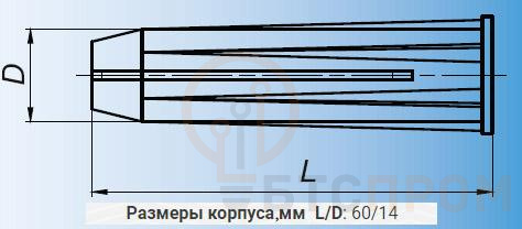 Основные характеристики: длина 60 мм, наружный диаметр 8 мм, внутренний диаметр под шуруп или саморез 4-5 мм. Конструкция дюбеля включает распорную зону и манжету-ограничитель, которая предотвращает проваливание в отверстие и обеспечивает плотное прилегание к поверхности.
