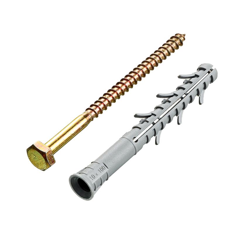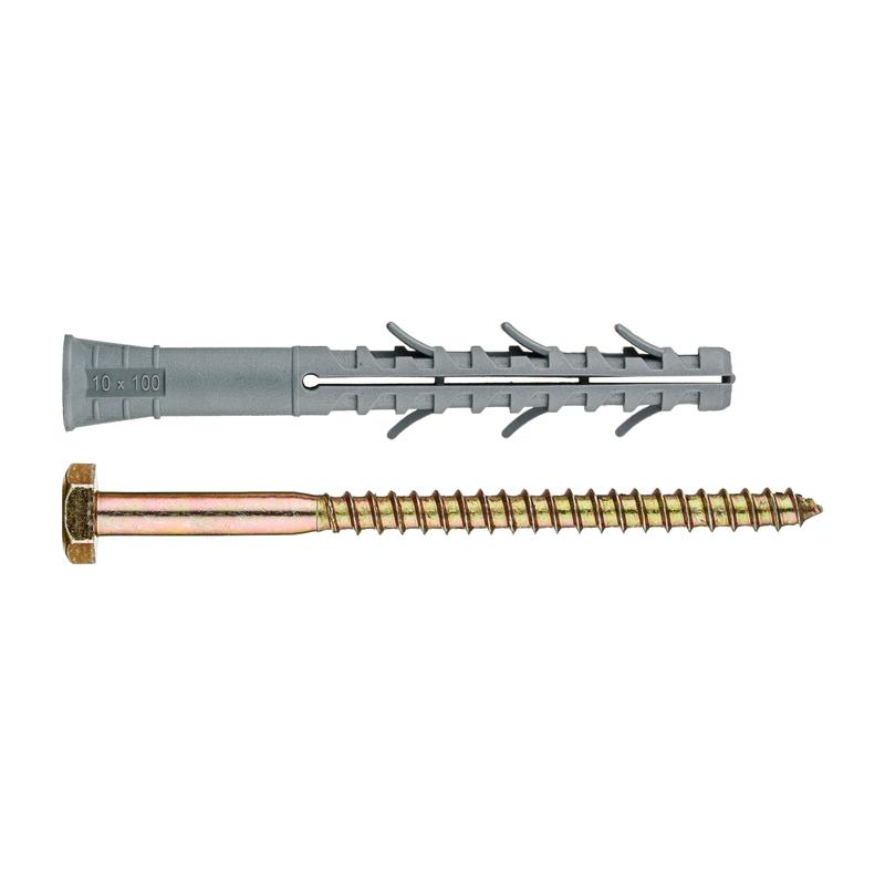 Дюбель фасадный TSX-S состоит из следующих элементов: гильза с конусообразным бортиком и двухсегментной распорной зоной, распорный элемент – усиленный шуруп с шестигранной головкой под ключ. Гильза выполнена из полиамида, шуруп – из углеродистой стали с электрооцинкованным защитным покрытием. Дюбель предназначен для крепления строительных материалов и изделий к основаниям из тяжелого и легкого бетона, кладки из полнотелого и пустотелого керамического кирпича, силикатного кирпича, кладки из ячеисто- и керамзитобетонных блоков. Для установки необходимо предварительное сверление отверстия.