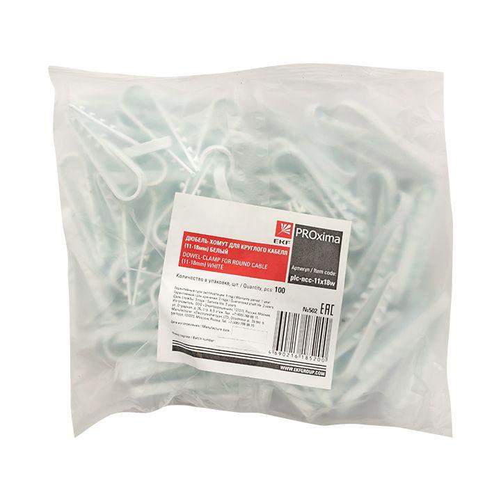 Дюбель-хомут d11-18мм для круглого кабеля бел. (уп.100шт) PROxima EKF plc-ncc-11x18w фото в каталоге от BTSprom.by