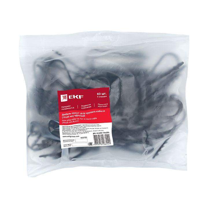 Дюбель-хомут d19-25мм для круглого кабеля черн. (уп.50шт) PROxima EKF plc-ncs50-19x25b фото в каталоге от BTSprom.by