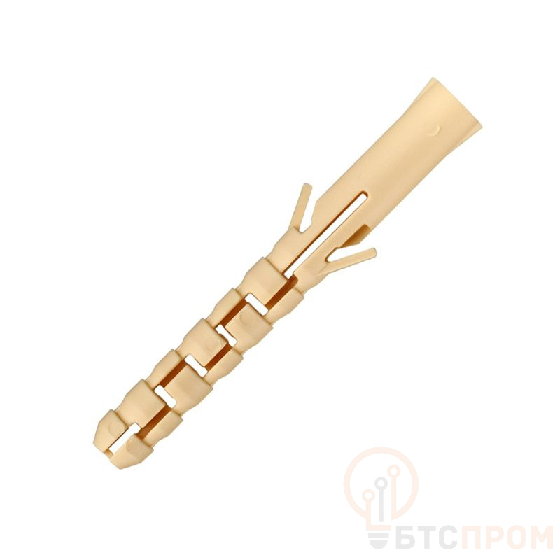 Дюбель обеспечивает надежную и долговечную фиксацию благодаря своей распорной конструкции, которая равномерно распределяет нагрузку в материале основания.