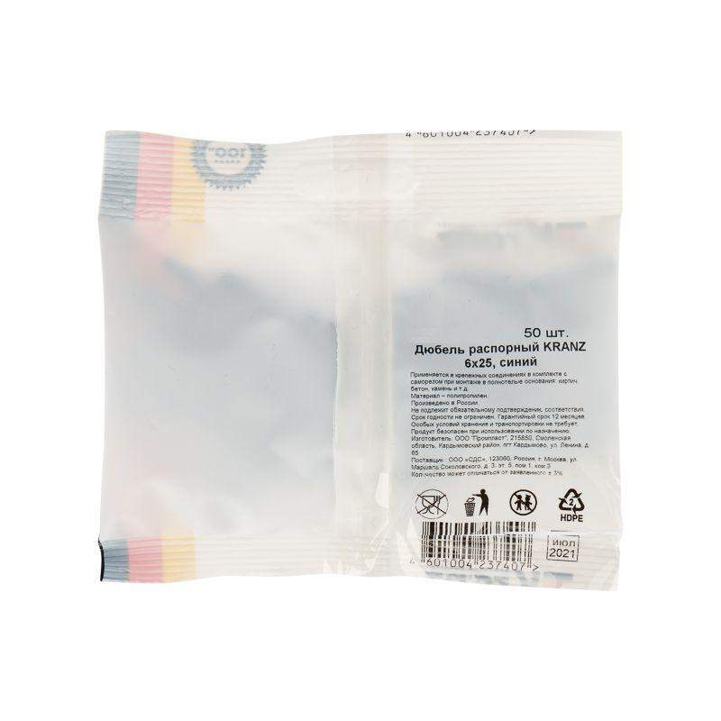 Дюбель – это крепежное изделие, которое используется вместе с другими крепежными элементами (например, с саморезами) для закрепления предметов на различных поверхностях: бетон, кирпич, блоки. Дюбель работает за счет 4-сегментного распора. Наличие усов и шипов с четырех сторон позволяет надежно фиксировать дюбель во время монтажа и избегать его прокручивания. Шипы надежно фиксируют дюбель в полнотелых материалах за счет увеличения силы трения. Дюбель KRANZ выполнен из качественного полипропилена