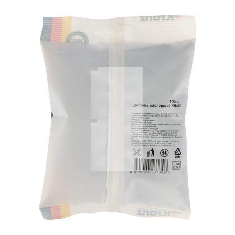 Дюбель – это крепежное изделие, которое используется вместе с другими крепежными элементами (например, с саморезами) для закрепления предметов на различных поверхностях: бетон, кирпич, блоки. Дюбель работает за счет 4-сегментного распора. Наличие усов и шипов с четырех сторон позволяет надежно фиксировать дюбель во время монтажа и избегать его прокручивания. Шипы надежно фиксируют дюбель в полнотелых материалах за счет увеличения силы трения. Дюбель KRANZ выполнен из качественного полипропилена