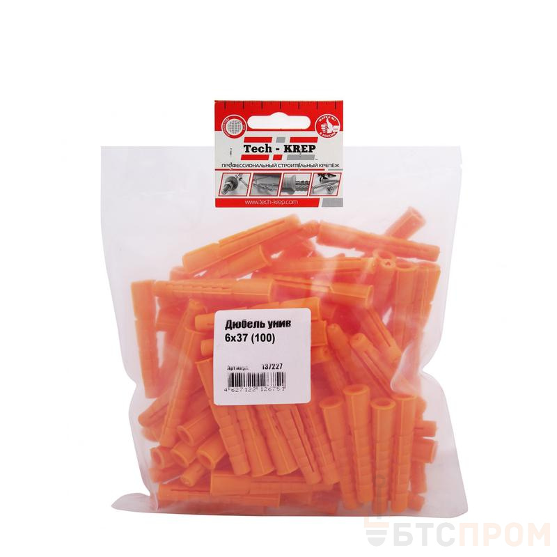 Дюбель универсальный 6х37 без бортика (уп.100шт) Tech-KREP 124450 фото в каталоге от BTSprom.by