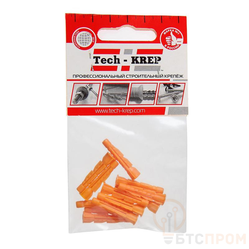 Дюбель универсальный 6х37 без бортика (уп.10шт) Tech-KREP 102928 фото в каталоге от BTSprom.by