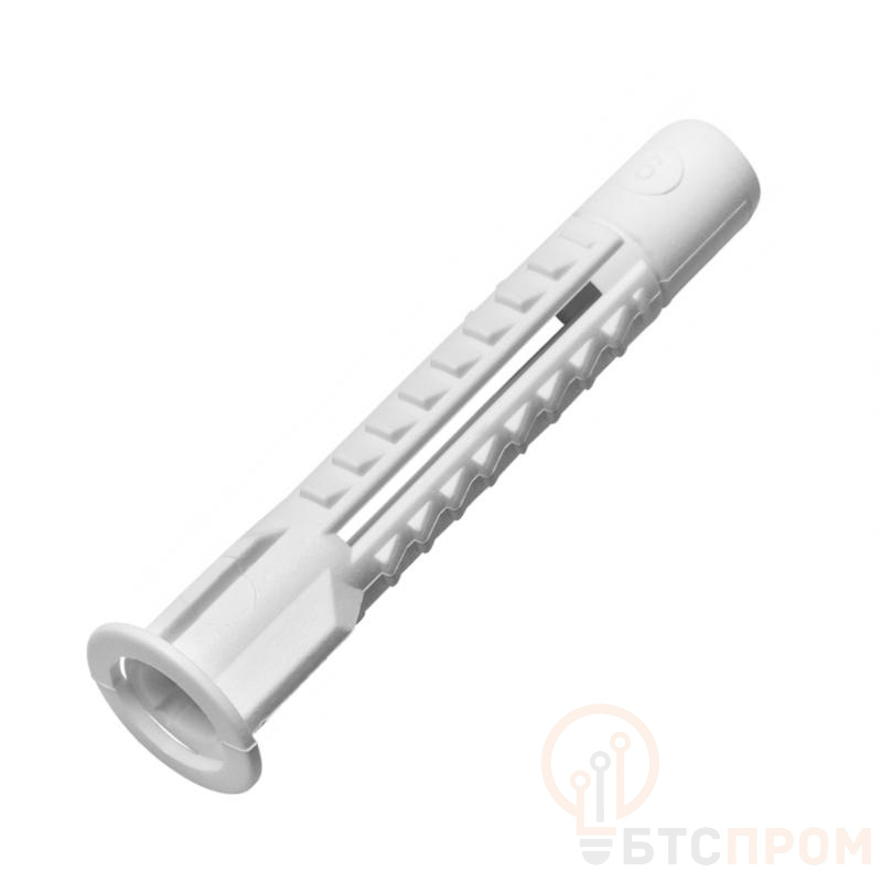 Универсальный дюбель изготовлен из полиэтилена и предназначен для легких креплений. YLT может использоваться как в листовых, так и в полнотелых и пустотелых материалах. Распорная часть дюбеля позволяет ему работать в полнотелых материалах как обычный дюбель, а в пустотелых и листовых заворачиваться в узел при затягивании шурупа. При монтаже используют шурупы по дереву или универсальные; длина = Длина дюбеля L + толщина прикрепляемого материала.