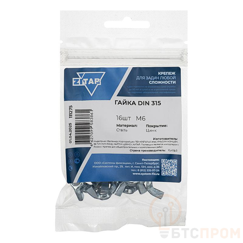 Гайка барашковая М6 DIN 315 (уп.16шт) Tech-Krep/Zitar 111275 фото в каталоге от BTSprom.by