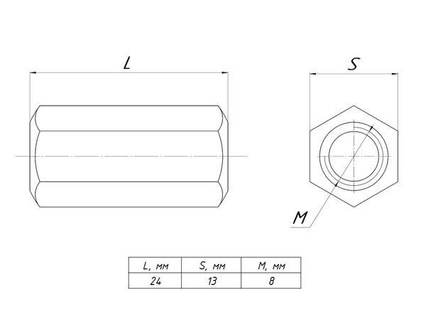 гайка соединительная м8 din 6334 ms8 сталь км lo0822 от BTSprom.by