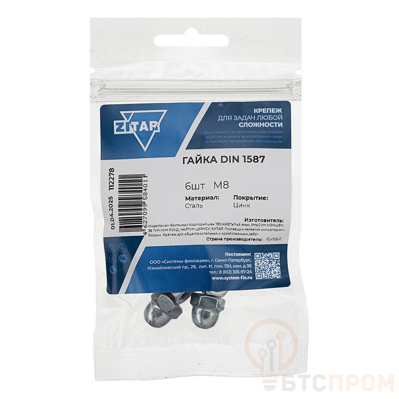 Гайка колпачковая М8 DIN 1587 оцинк. (уп.6шт) Tech-Krep/Zitar 112278 фото в каталоге от BTSprom.by