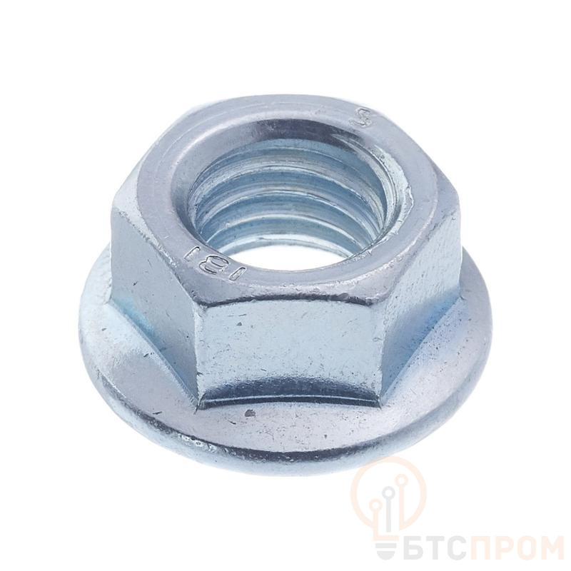 Гайка шестигранная с фланцем и зубьями DIN 6923 широко применяется в машиностроении и строительстве совместно с резьбовыми шпильками и болтами и служит для фиксации деталей машин и конструкций. Особенностью гайки DIN 6923 является наличие фланца, который играет роль шайбы и увеличивает опорную поверхность соединения, поэтому при установке гайки нет необходимости в использовании шайбы. На нижней поверхности фланец изделия может иметь насечку для обеспечения лучшего сцепления с деталью или быть гладким.