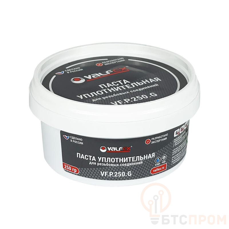 Паста уплотнительная VALFEX VF.P.250.G – это высококачественный пастообразный герметик весом 250 грамм, предназначенный для создания надежных и долговечных соединений. Основная сфера применения – уплотнение резьбовых соединений в системах водоснабжения, отопления и газоснабжения, работающих в условиях умеренных температур и давления.