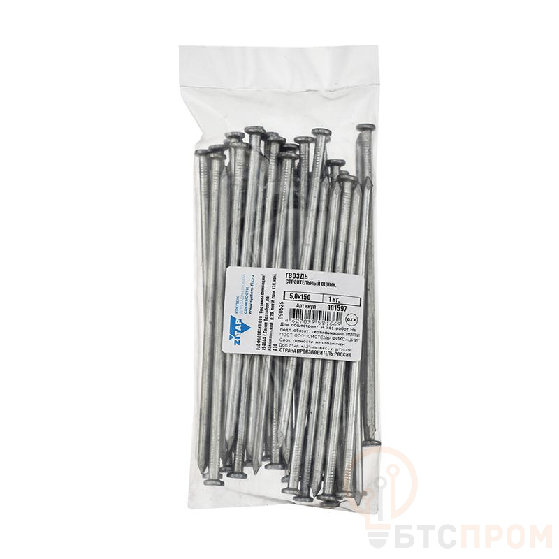 Гвоздь строительный 5х150 оцинк. (уп.1кг) Zitar 101597 фото в каталоге от BTSprom.by