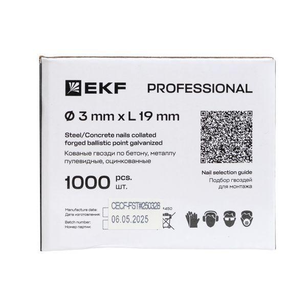 Гвоздь кованый для монтажн. пистолета по бетону металлу Bullet Type 3х19 цинк. (уп.1000шт) Expert EKF cpn-3019bp