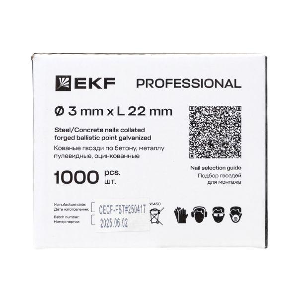 Гвоздь кованый для монтажн. пистолета по бетону металлу Bullet Type 3х22 цинк. (уп.1000шт) Expert EKF cpn-3022bp