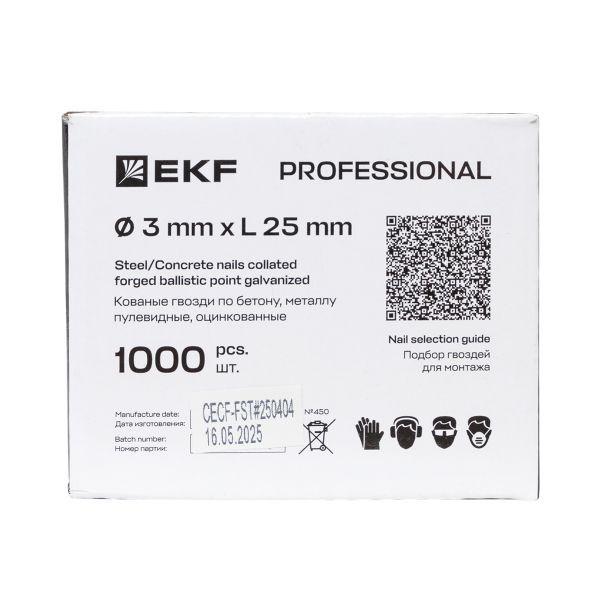 Гвоздь кованый для монтажн. пистолета по бетону металлу Bullet Type 3х25 цинк. (уп.1000шт) Expert EKF cpn-3025bp