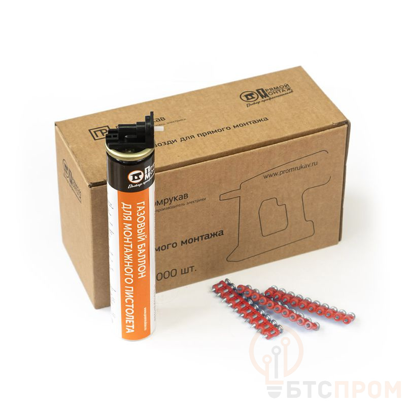 Комплект газовый баллон 165мм и гвозди для прямого монтажа 3х16мм (кованые) (уп.1000шт) Промрукав PR08.22647