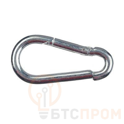 Карабин пожарный предназначен для быстрого и надежного крепления страховочных цепей, тросов между собой или к различным конструкциям и основаниям. Применяется в строительстве и в быту. Карабин изготовлен из стали с цинковым покрытием, которое образует защитный барьер на поверхности металла, предотвращающий появление коррозии. При наличии пружинного фиксатора можно осуществлять быстроразъемное соединение, что позволяет быстро прикрепить или соединить вместе цепь или трос. Данный карабин не предназначен для подъема тяжелого груза.