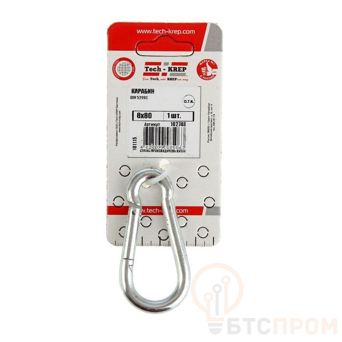 Карабин пожарный DIN 5299 C с пружинным затвором изготовлен из углеродистой стали с антикоррозионным цинковым покрытием. Применяется в строительстве и быту для временного соединения тросов, канатов, цепей механизмов с точками крепления, имеющими кольцевое окончание. Не предназначен для грузоподъемных работ. Размер карабина соответствует диаметру поперечного сечения проволоки, из которой он выполнен.