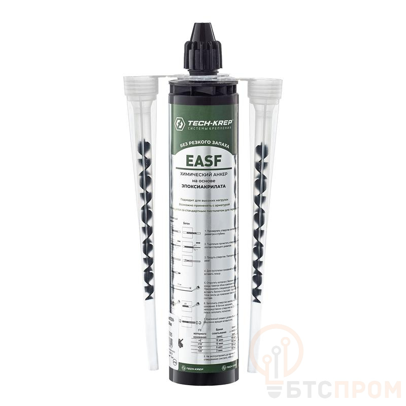 Химический анкер EASF EPOXY 300мл от Tech-KREP – это высокопрочная двухкомпонентная система на основе эпоксидной смолы, предназначенная для надежного монтажа в бетоне, природном камне и других полнотелых материалах. Объем 300 мл идеально подходит для серийного крепежа.