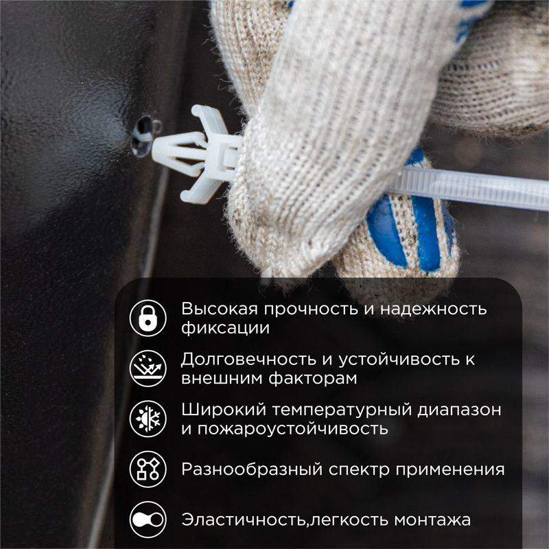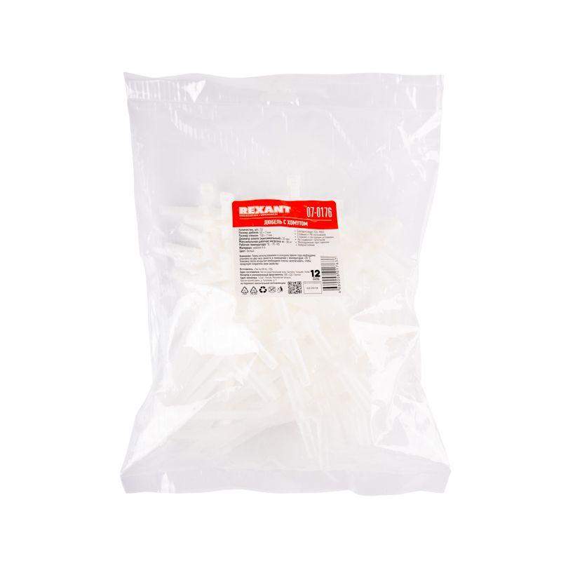 Дюбель с хомутом нейлоновый 150х7 мм белый REXANT предназначен для крепления или обвязки в жгут кабелей и проводов, крепления гибких гофротруб, а также других предметов к несущей поверхности или для соединения между собой. Такая стяжка используются при проведении электромонтажных работ, при монтаже структурированных кабельных систем, для бытовых нужд, а также в других отраслях народного хозяйства. Представляет собой дюбель могоразовый и гибкую полоску из нейлона высокой прочности (полиамид-6,6) с замком на конце. Полиамид-6,6 — кристаллизующийся конструкционный материал, имеющий высокую твердость и механическую прочность, отличающийся высокими электроизоляционными свойствами. Простой и удобный монтаж осуществляется вручную следующим образом: большим пальцем левой руки прижать замок к пучку, а правой рукой затягивайте петлю. Использование дюбеля с хомутом позволяет отказаться от обычных дюбелей и шурупов. Не рекомендуется перегибать бандаж при затяжке. Хомуты нейлоновые гарантируют качество, оперативность и экономичность профессионального электромонтажа, обеспечив максимально надежную фиксацию предметов. Основные характеристики: - длина и ширина: 150х7 мм - диаметр охвата (максимальный): 35 мм - максимальная рабочая нагрузка: 38 кг - высокое сопротивление к основаниям, маслам, смазочным материалам, хлоридным растворителям - класс воспламеняемости: UL 94 класс V-2 (самозатухающий) - не содержит галогенов - тип: неразъемные, одноразового использования - температурный диапазон использования: –35...+85 ? - количество в упаковке: 50 шт. - цвет: белый.
