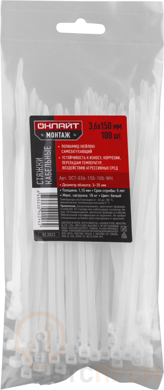 Хомут 90 296 OCT-036-150-100-WH (уп.100шт) ОНЛАЙТ 90296 фото в каталоге от BTSprom.by