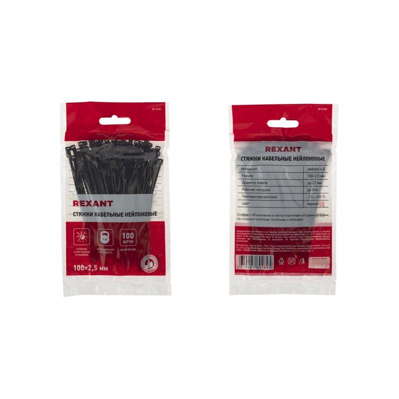 Хомут кабельный 2.5х100 нейл. черн. (уп.100шт) Rexant 07-0101 фото в каталоге от BTSprom.by