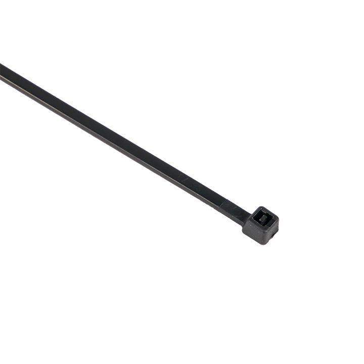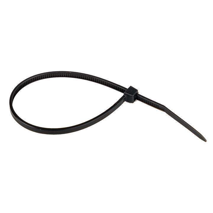 Предназначен для увязки кабелей и проводов в пучок и монтажа кабельных линий и проводников. Ремешок самофиксирующийся, блокирующий механизм. Изготовлен из Nylon 6.6, устойчивого к старению, коррозии, воздействию солей, ультрафиолета, кислот, щелочей, спирта, бензина и масел. При производстве кабельных стяжек черного цвета добавляется угольный порошок, который является одним из наиболее эффективных стабилизаторов. Он улучшает физические свойства продукции в стойкости к погодным условиям и УФ-излучению (прямые солнечные лучи).