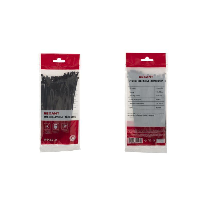 Хомут кабельный 2.5х150 нейл. черн. (уп.100шт) Rexant 07-0151 фото в каталоге от BTSprom.by