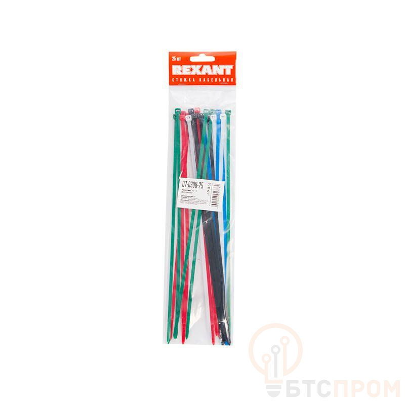 Нейлоновый хомут представляет собой экономичное и легкое крепежное изделие, используемое при проведении электромонтажных работ и организации кабельных систем. С его помощью выполняется фиксация проводов и труб, соединение их в жгут, маркировка и крепление к поверхностям. Стяжки изготовлены из высокопрочного нейлона- 6,6 (полиамида). Материал способен выдерживать большие нагрузки и не подвергается воздействию ультрафиолета, органических растворителей и горюче-смазочных материалов. Для монтажа устройства нужно вставить конец зубчатой ленты в замок и затянуть до образования петли необходимого диаметра. Также можно воспользоваться специальным монтажным инструментом (арт. 12-4524, 12-4521 и 12-4541). В упаковке поставляются 25 стяжек размером 300x4,8 мм черного, белого, красного, синего, зеленого цветов (по 5 шт).
