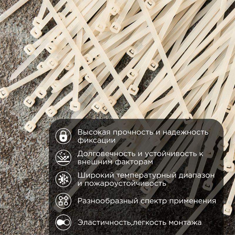 Нейлоновый хомут PROconnect – это изделие, применяемое для фиксации или соединения в жгут проводов, кабелей и любых разновидностей труб. Используется как в профессиональной сфере, так и в быту. Хомут размером 350x4,8 мм обеспечивает надежную фиксацию и обладает высокой прочностью. Долговечен и устойчив к внешним факторам, не подвергается воздействию органических растворителей и горюче-смазочных материалов. Является экологически чистым продуктом, не содержит галогенов. Изделие представлено в виде гибкой полосы из нейлона с зубчатым фиксирующим механизмом. Хомут PROconnect является продуктом высокого качества по доступной цене. Установка стяжки может выполняться вручную или с помощью специального монтажного пистолета (арт. 12-4524, 12-4521 и 12-4541). Не рекомендуется перегибать изделие более чем на 90° при монтаже или хранении. По окончании работ излишки длины обрезаются.