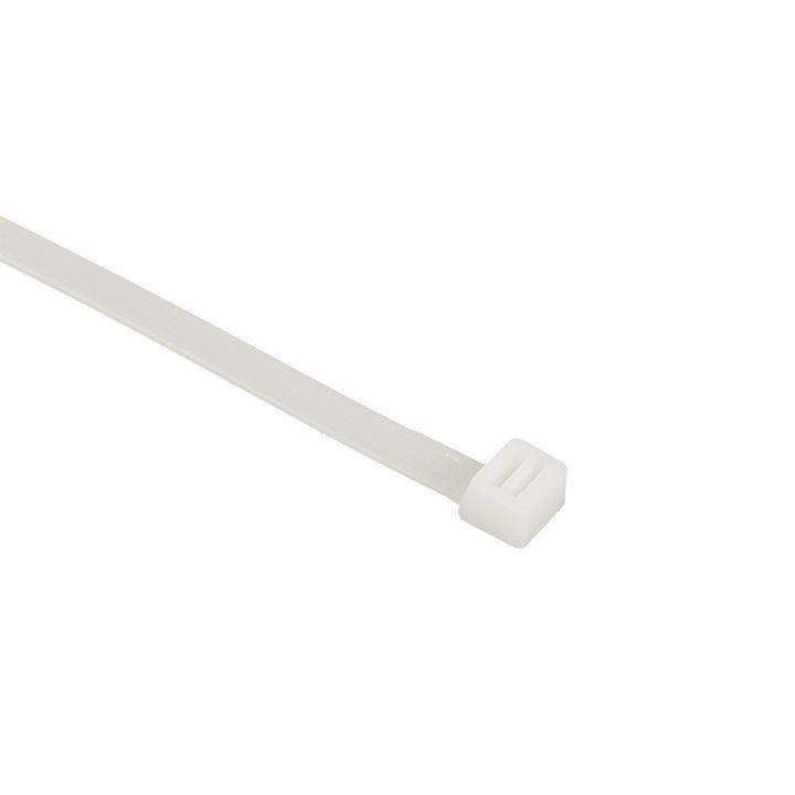 Предназначен для увязки кабелей и проводов в пучок и монтажа кабельных линий и проводников. Ремешок самофиксирующийся, блокирующий механизм. Изготовлен из Nylon 6.6, устойчивого к старению, коррозии, воздействию солей, ультрафиолета, кислот, щелочей, спирта, бензина и масел. При производстве кабельных стяжек черного цвета добавляется угольный порошок, который является одним из наиболее эффективных стабилизаторов. Он улучшает физические свойства продукции в стойкости к погодным условиям и УФ-излучению (прямые солнечные лучи).