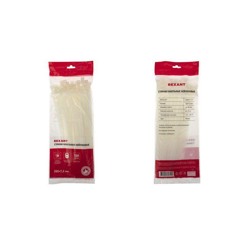 Нейлоновый хомут (кабельная стяжка) REXANT представляет собой белую гибкую полоску из полиамида с замковым механизмом одностороннего действия. Используется для крепления или соединения в жгут проводов, кабелей и любых разновидностей труб. Прочность, эластичность и простота монтажа позволяют использовать их на предприятиях и в быту. Нейлоновая стяжка REXANT отличается надежной фиксацией, прочностью и устойчивостью к внешним воздействиям. Изделие является экологически чистым продуктом, не содержит галогенов. Установка может быть выполнена вручную или с помощью специального пистолета. По окончании работ излишки длины обрезаются. Не рекомендуется перегибать изделие более чем на 90° при монтаже или хранении. В упаковке поставляются 100 стяжек размером 300x7,6 мм.